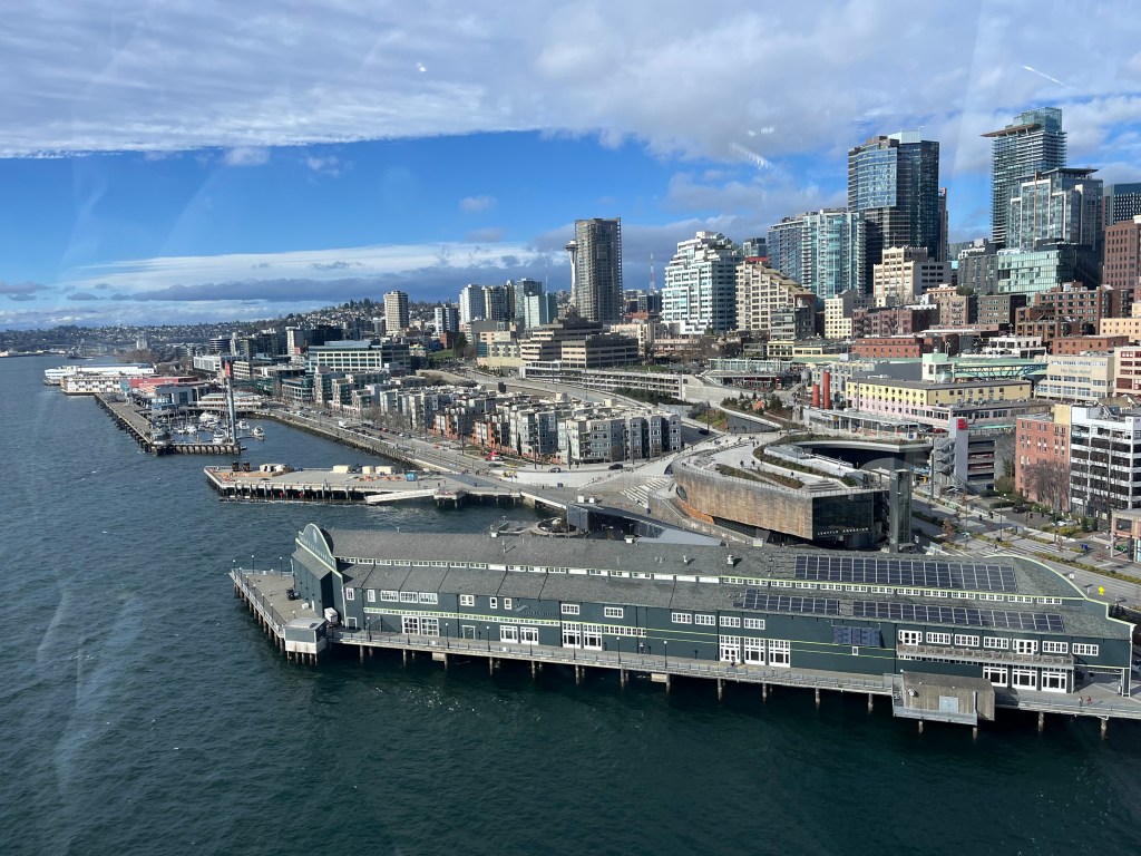 For a delightful detour, you can stroll on the new Elliott Bay Connections (EBC) project. At the base of Olympic Sculpture Park, along the Puget Sound, this new project is backed by Melinda French Gates and Mackenzie Scott. Defunct street rail lines have been replaced with a bike and foot path that connects a new waterfront park with the Olympic Sculpture Park and Myrtle Edwards Park. (https://downtownseattle.org/programs-services/parks-and-public-spaces/elliott-bay-connections/)