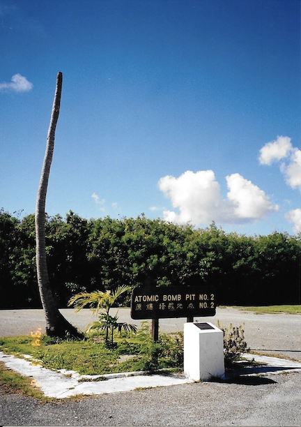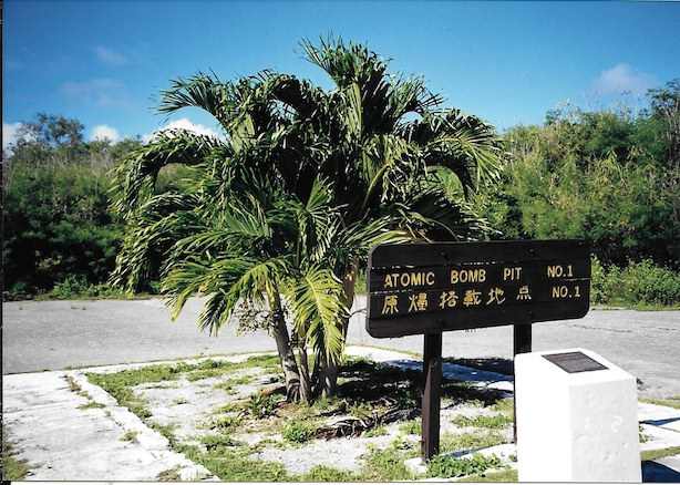 Ruins of World War II barracks About 50 feet away was another signpost: “Atomic Bomb Pit No. 2.” Another atom bomb, “Fat Man,” was winched into the belly of Bock’s Car here prior to its journey to Nagasaki.