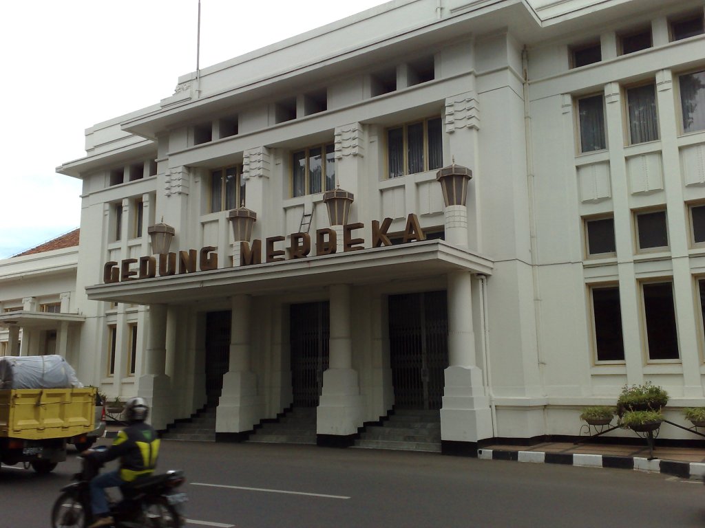 Art deco building in Bandung At the Gedung Merdeka Bandung reached the height of its fame. In 1955, Soekarno, Chou En-Lai, Nasser, Ho Chi Minh and other third world leaders met at the AfroAsian Conference, otherwise known as the Bandung Conference. The building, dating from 1879, was known as the “Concordia Sociteit”, the meeting hall of Dutch colonial associations. In April 1955, it was literally the capital of the third world. The Bandung Conference’s 10 principles defined the Non-Aligned Movement throughout the coming Cold War period until the collapse of the Soviet Union. Some of those principles, such as non-aggression, respect for sovereignty, non-interference in internal affairs, and peaceful co-existence are as timely today as they were then. The conference lit the fire of a number of anti-colonial movements that followed in the coming decade. The massive hall where the delegates met is filled with flags of the 29 participating nations. In the museum you can learn about what happened here and see wax figures of some of the most famous leaders who attended, including Soekarno, speaking from a podium.
