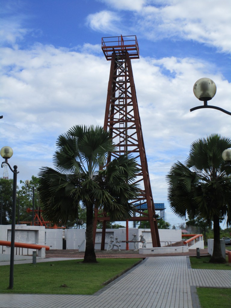 Miri is also where the Malaysian petroleum industry got its start, with the first well dug in 1910. The old derrick, called the Grand Old Lady, has been preserved. At its base are statues of Chinese labourers depicted as manually doing the drilling. Wrapped around it is a curving monument with panels describing the history of the industry in Miri. The sleek Petroleum museum just steps away is definitely pro-big oil and understandably so. The oil business built Miri and is its main income contributor. Opened in 2005 it goes in-depth into how the industry works, including a scale model of a drilling platform. When I visited there was an informative exhibit on the indigenous people in Sarawak. Outside the museum is a sweeping view of the city and the sea from its on the top of Canada Hill.