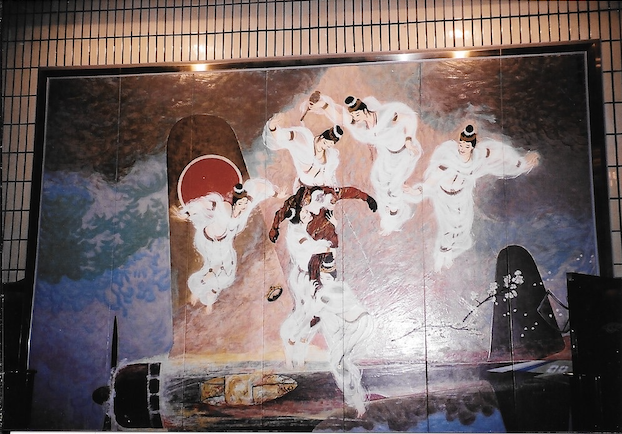 Recovered Mitsubishi Zero The museum was opened in 1975 as part of a complex. Next to it is the Heiwa-Kannon Temple containing the goddess Kannon, who appropriately enough in this case is symbolic of pity. The temple was opened in 1955. The museum is in the shape of a plane. In front of it is a bronze statue of a kamikaze pilot next to a Mitsubishi Zero. In the entrance hall is a huge lacquer-wood painting of a kamikaze pilot’s body being lifted from a burning plane and gently carried by a half-dozen angelic spirits to a better afterworld – his sacrifice supposedly not in vain.