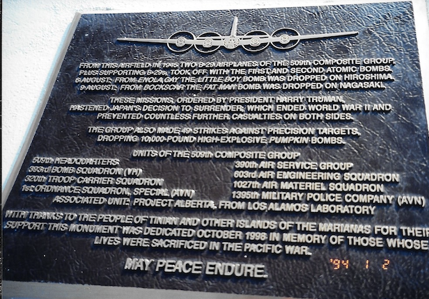 Plaque to commemorate that planes with atomic bombs left from this airfield